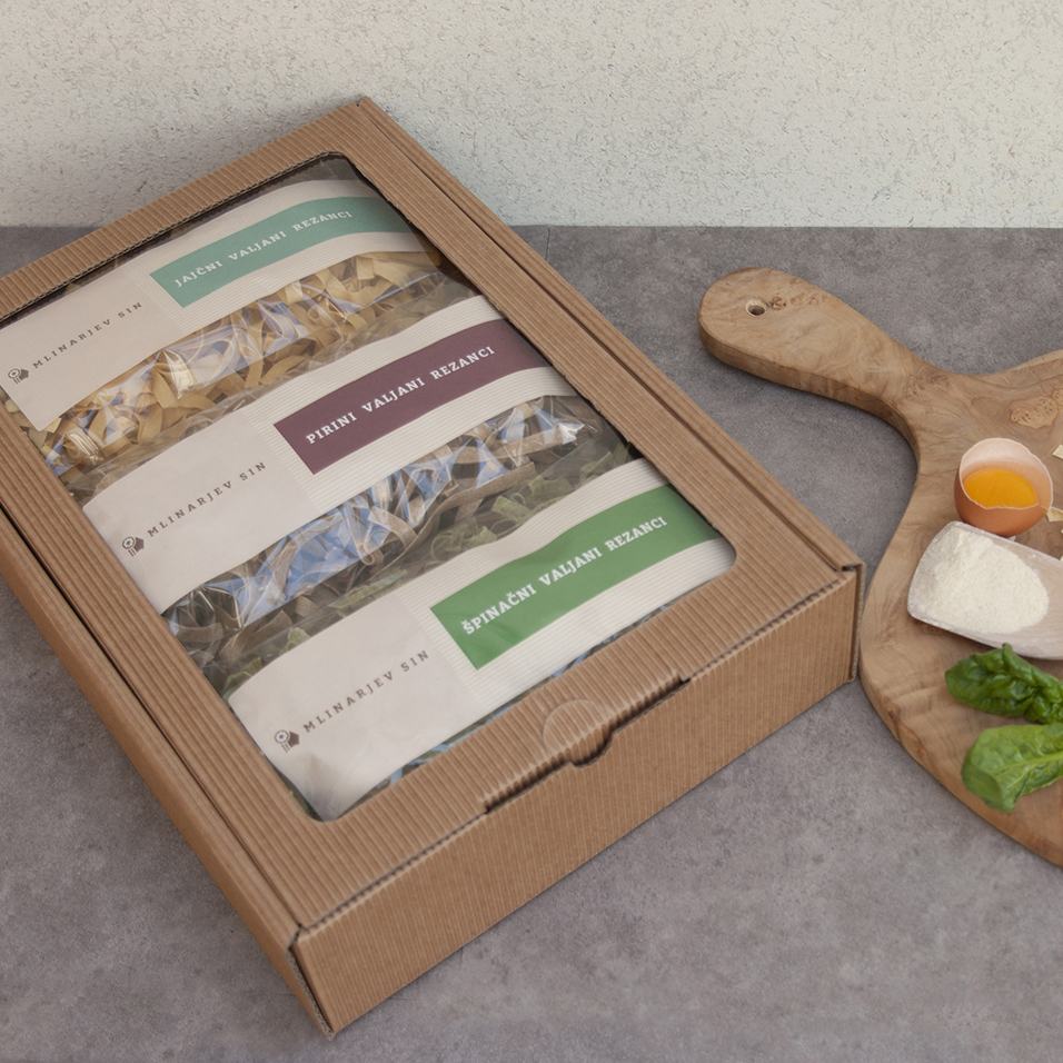 Darilni paket in darilne vrečke s testeninami Mlinarjev sin